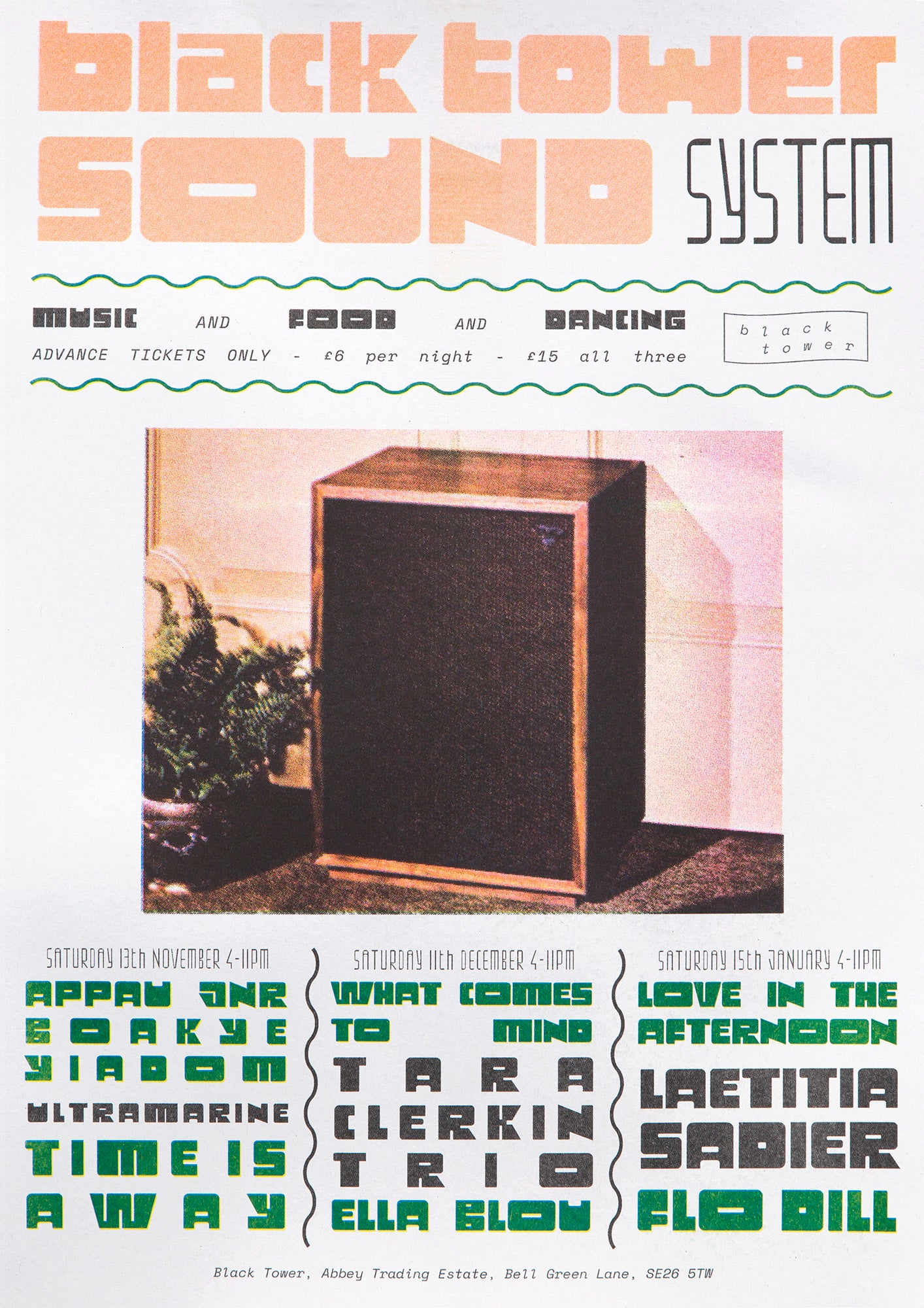 The Black Tower Sound System will be launched by a series of events featuring live music by Ultramarine, Tara Clerkin Trio and Laetitia Sadier and DJ sets by Appau Jnr Boakye-Yiadom, Time Is Away, What Comes To Mind, Ella Blou, Love In The Afternoon and Flo Dill.