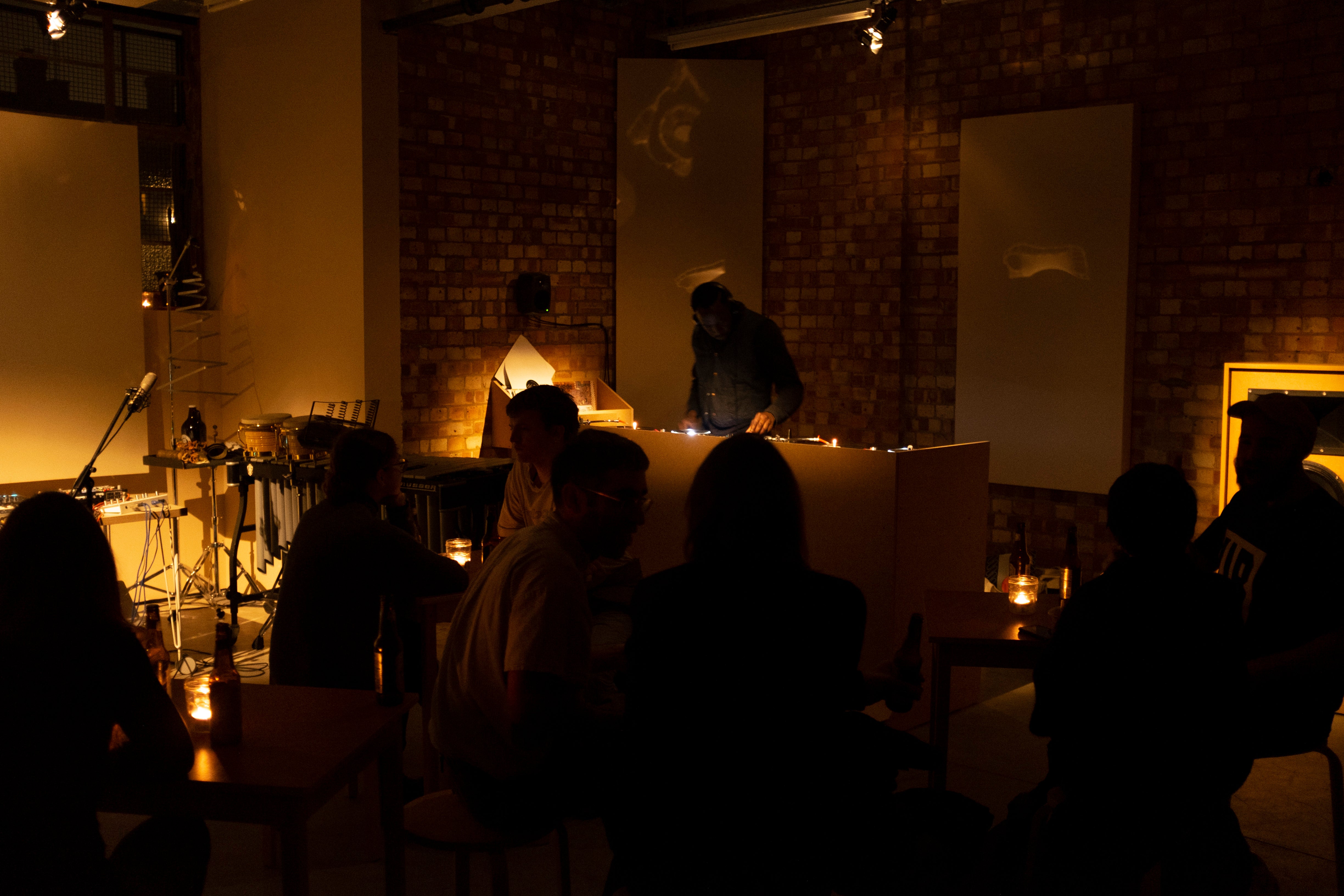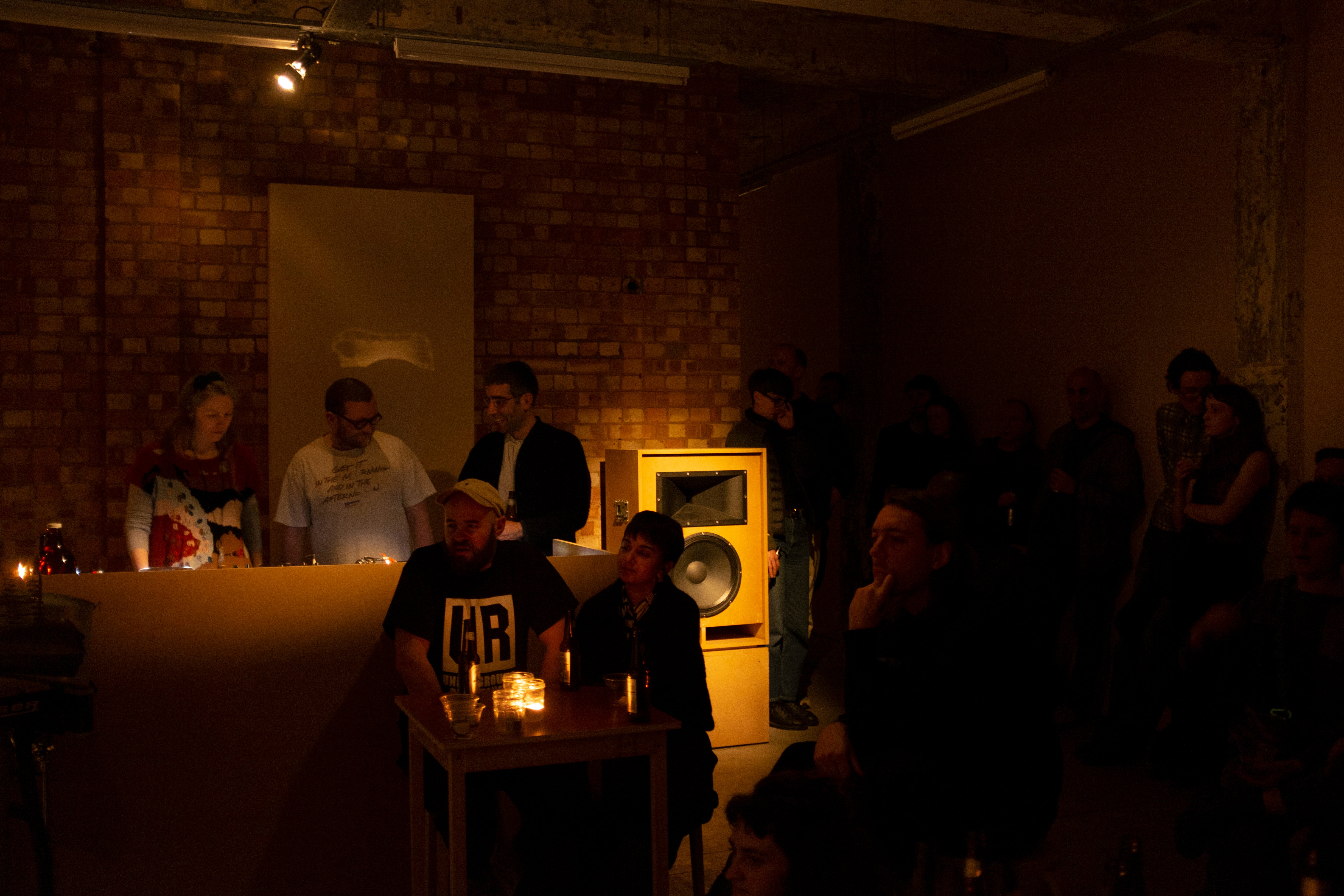 Built partly using materials left behind from previous exhibition projects, the sound system is bespoke in the sense it is built with the texture and atmosphere of the project space in mind, rather than focusing on the architecture’s sonic properties. It gently resists audiophile precision in favour of idiosyncratic experimentalism.