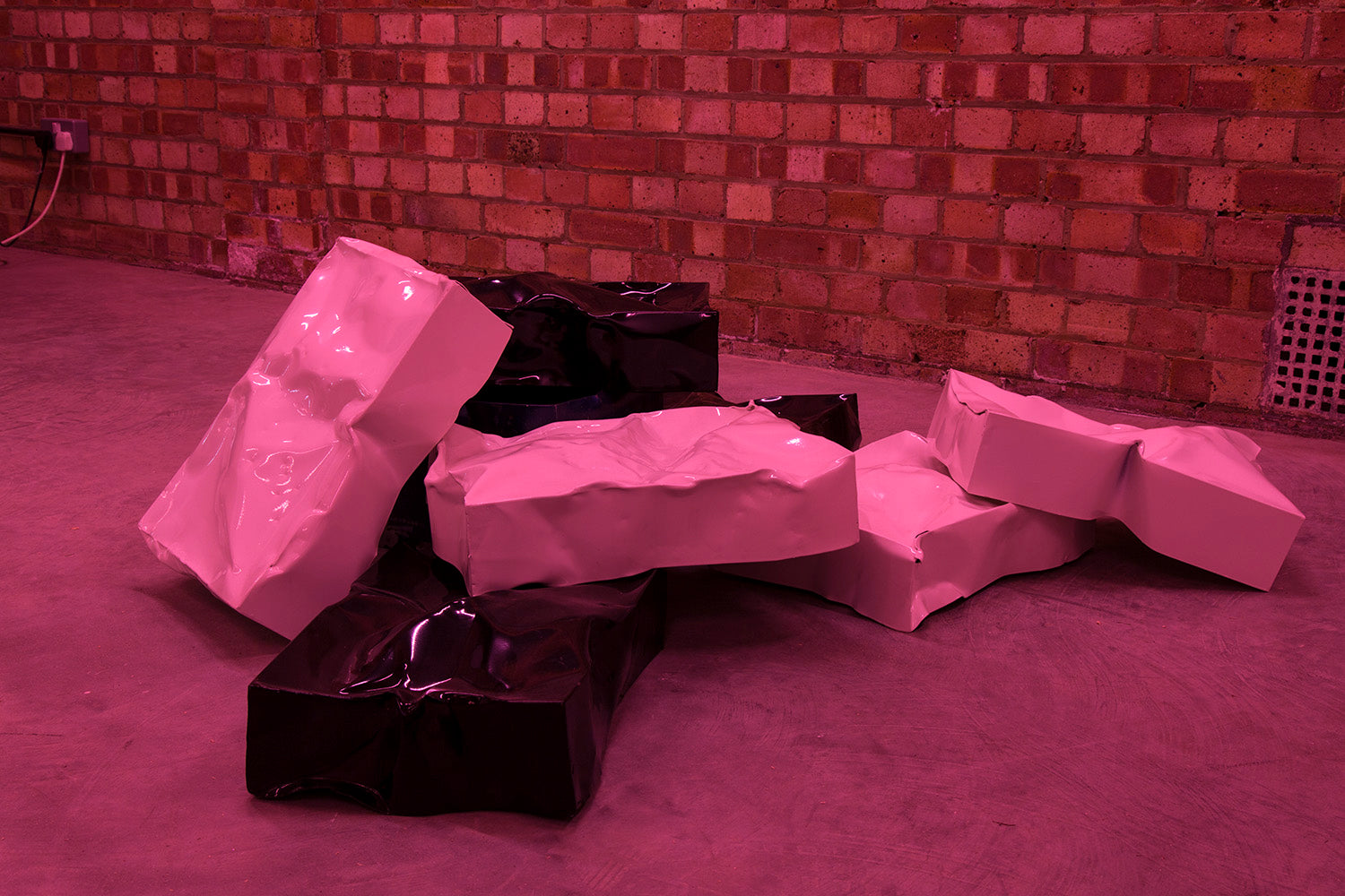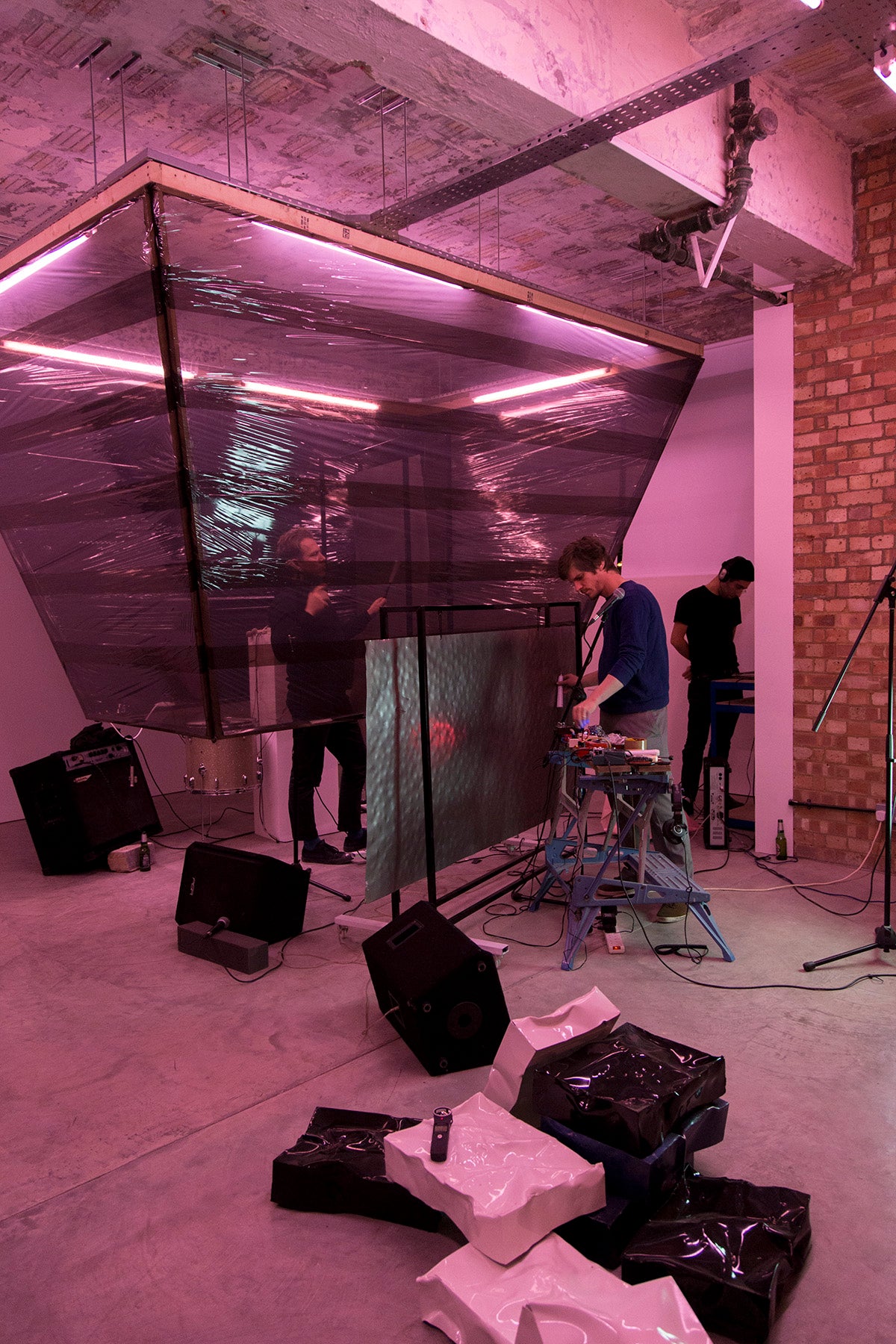 The relationship between music and sculpture is of particular interest to Winter, with the former generating the production of the latter. In this sense, the music informs the formal structure of the exhibition. Responding to the rhythm, tones and emotion of his musical output, Winter works at materials to create a sculptural iteration of the Ergonomics project, housed within an architectural intervention that echoes the idiosyncrasies of Black Tower Projects.