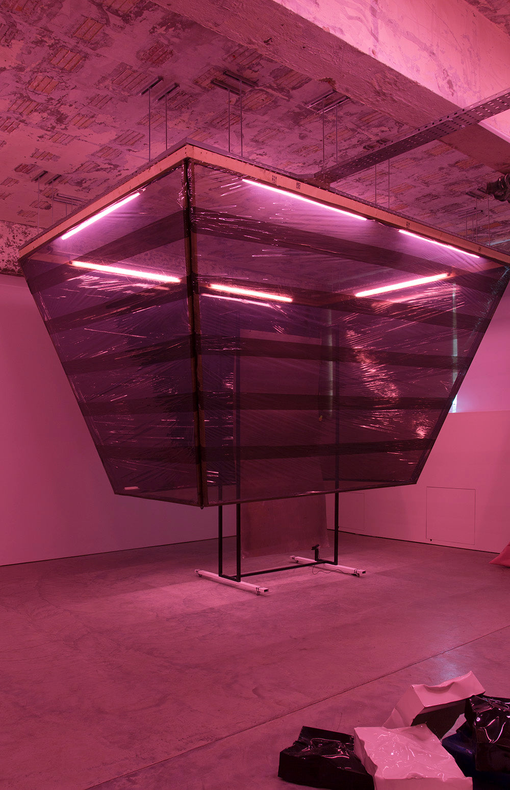 Can’t Help It continues Winter’s exploration of his handyman aesthetic, a mode of operations that are informed by the extraction, abstraction and collision of materials and spatial play. Working with sculpture, installation, sound and performance, Winter produces abstract apparatus that reference urban dissonance and reflect on cultish practices. His work seeks to embody, in object and sound, a state of transformation that is birthed from symbolic and physical enactments of rupture. In the destruction of a fence or hoarding, a petrol bomb to a peace wall, a brick to a riot shield, a smashed shop window in a protest, the surfaces that are the first to be struck are the elements that form Winter’s material language.