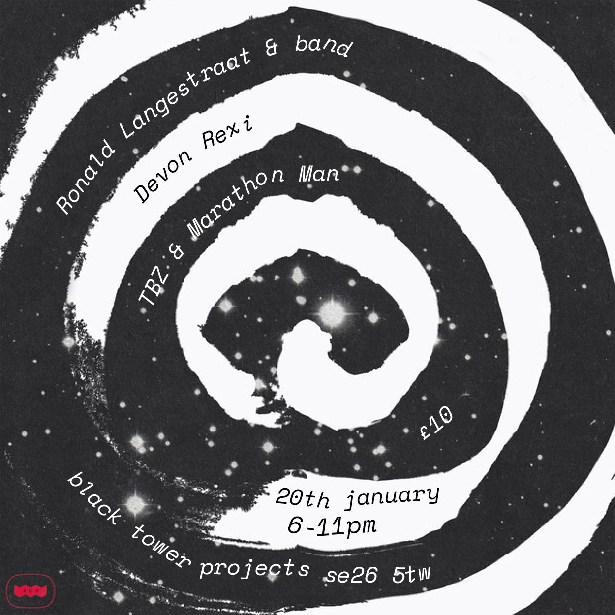 an evening with Amsterdam record label South Of North > live music by cosmic jazz veteran Ronald Langestraat and farsi-sung no-wavers Devon Rexi + B2B DJ sets from TBZ & Marathon Man.
